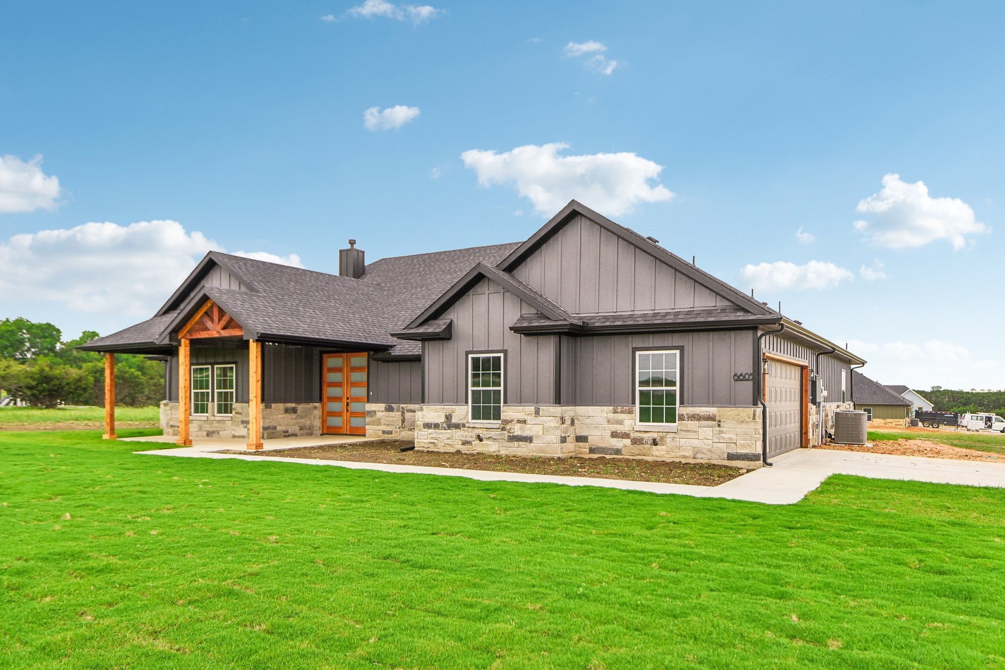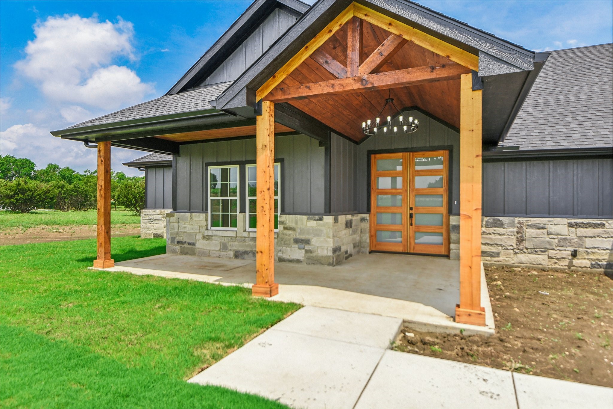 Nestled on a sprawling 2-acre lot, this stunning four-bedroom, three-bathroom home offers an open floor plan designed for modern living. The spacious interior features vaulted ceilings and custom cabinets, enhancing both style and functionality. Step outside to enjoy the covered patio and porch, perfect for entertaining or relaxing in your ample outdoor living space. This property seamlessly blends indoor and outdoor living, creating a private oasis that you'll love to call home.